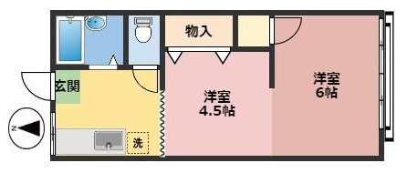 2Kタイプの間取図です。