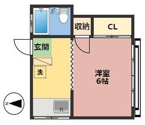 1Kタイプの間取図です。